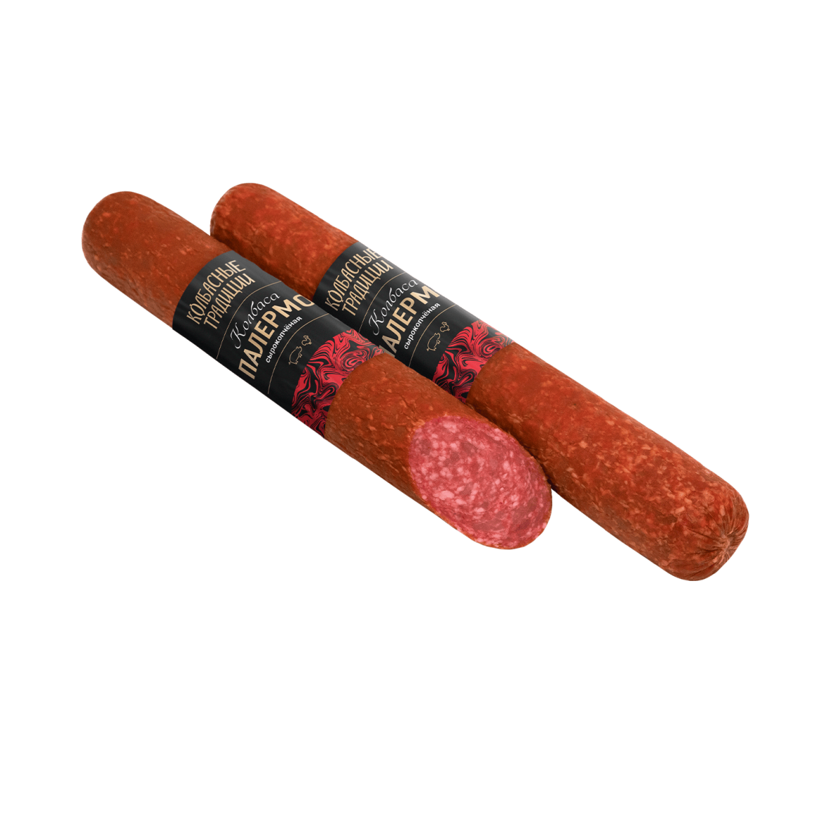 «Палермо» - это полусухая сырокопчёная колбаса, которая проходит долгий процесс копчения. Яркий вкус колбасе придаёт чеснок и лук, а добавление шпика делает её текстуру зернистой. Колбаса «Палермо» отлично подходит для подачи на праздничный стол.