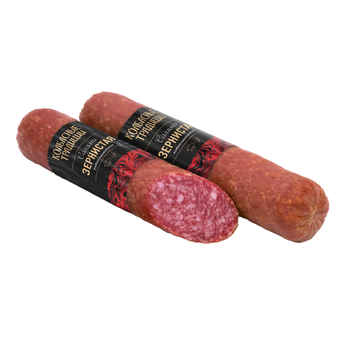 Продукт из мяса птицы. Колбасное изделие сырокопчёное. Колбаса полусухая «Салями Зернистая» 1 сорт охлажденная.